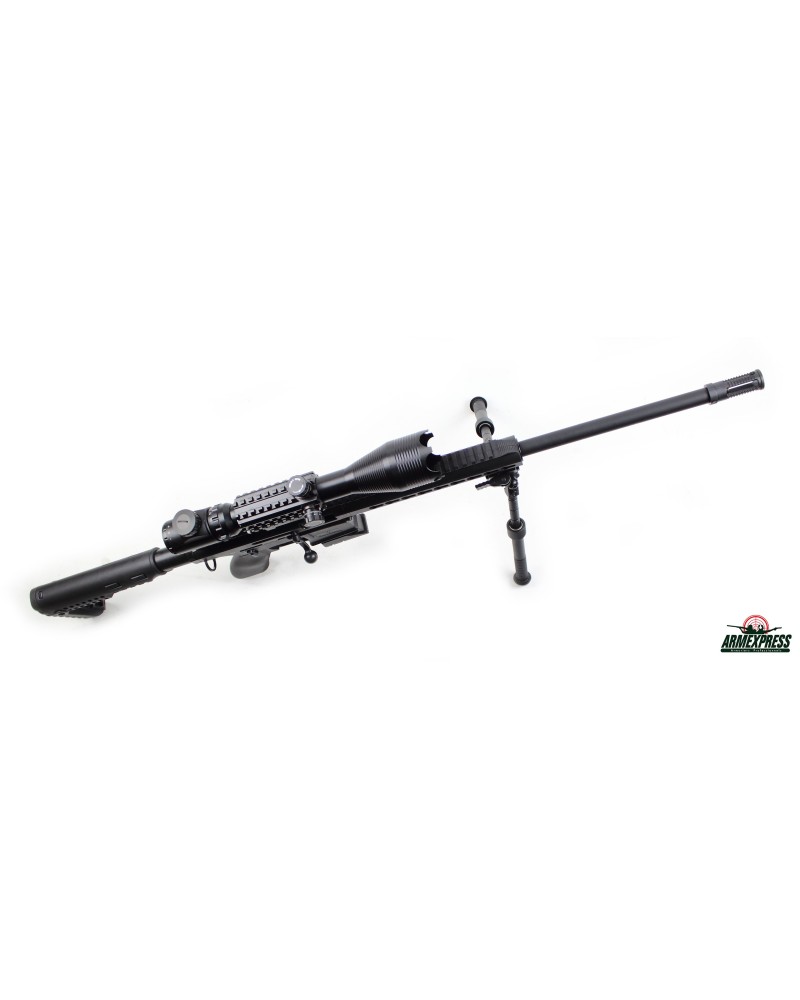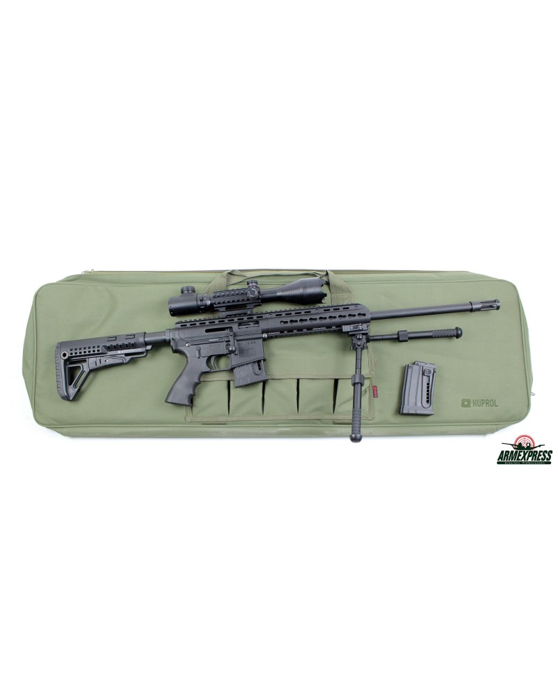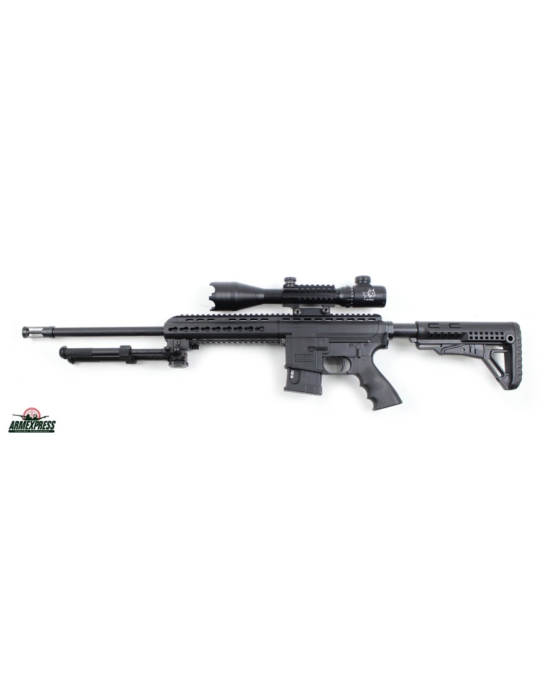 - Accessoires : Pack livré avec une lunette 4-16x50 à réticule lumineux 11 E rouge ou vert et son montage, un bipied sur rail pictinny, un second chargeur et une housse.