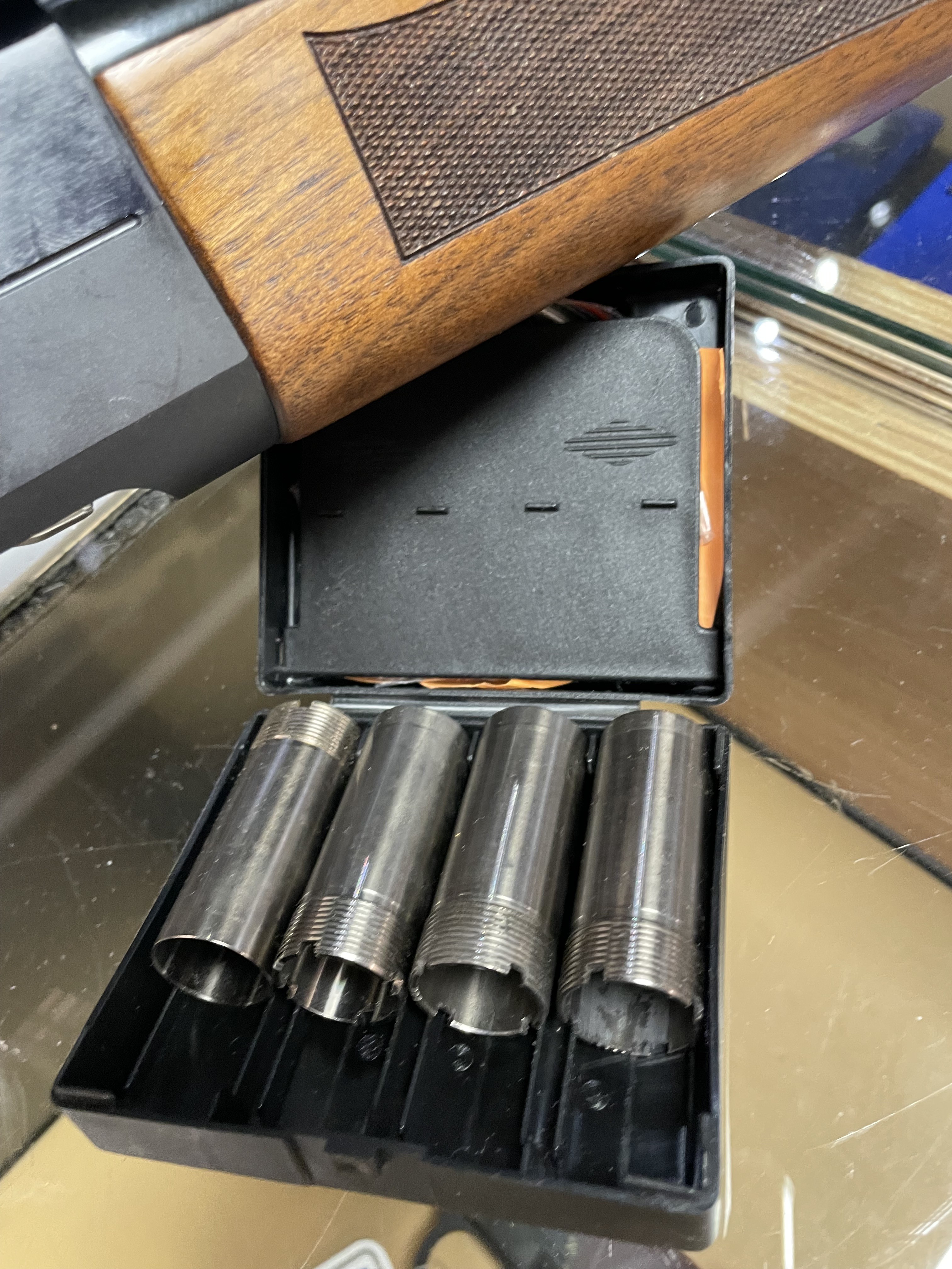 Longueur totale 123cm, longueur canon 71cm, 5 choques interchangeables.