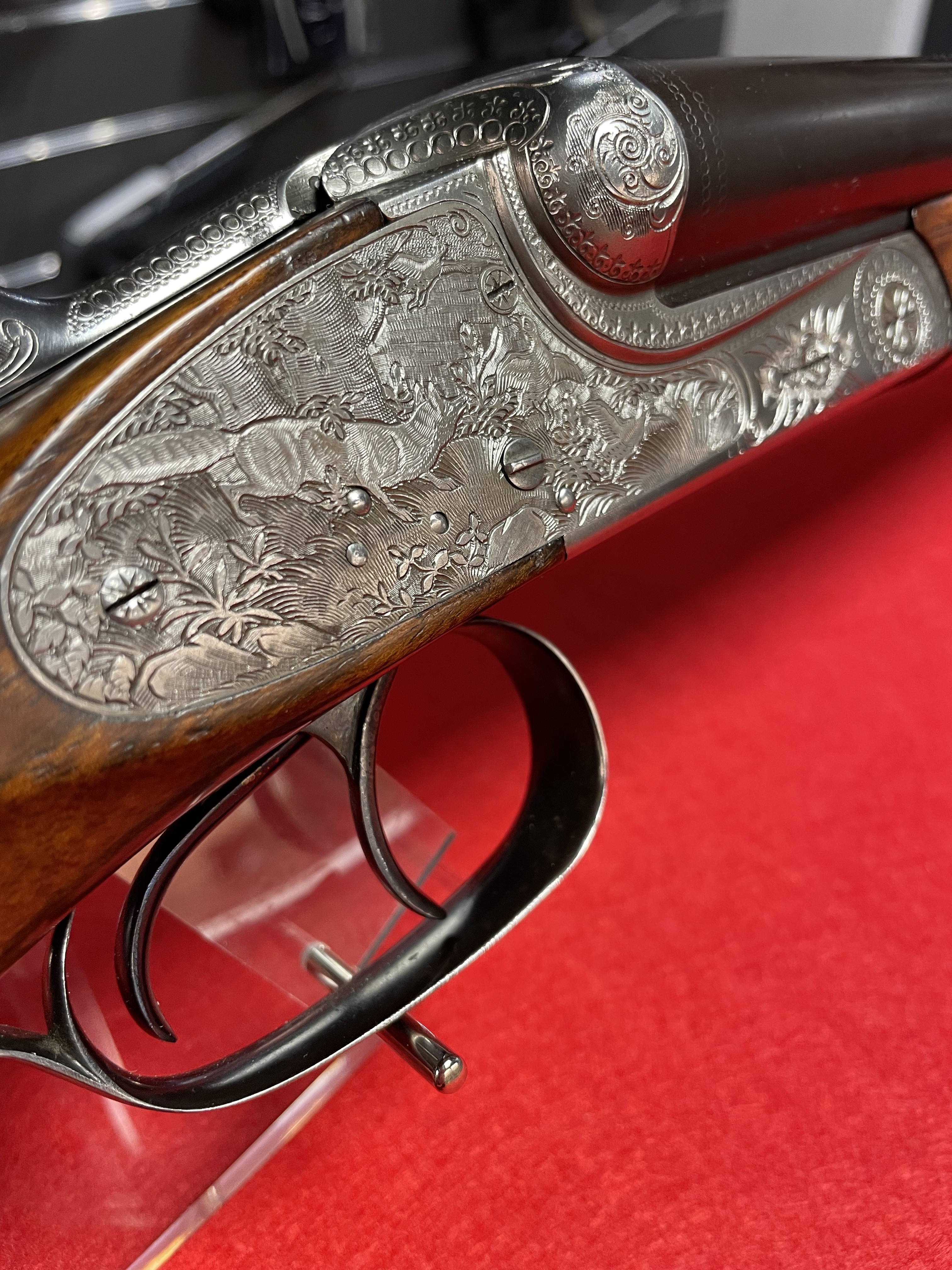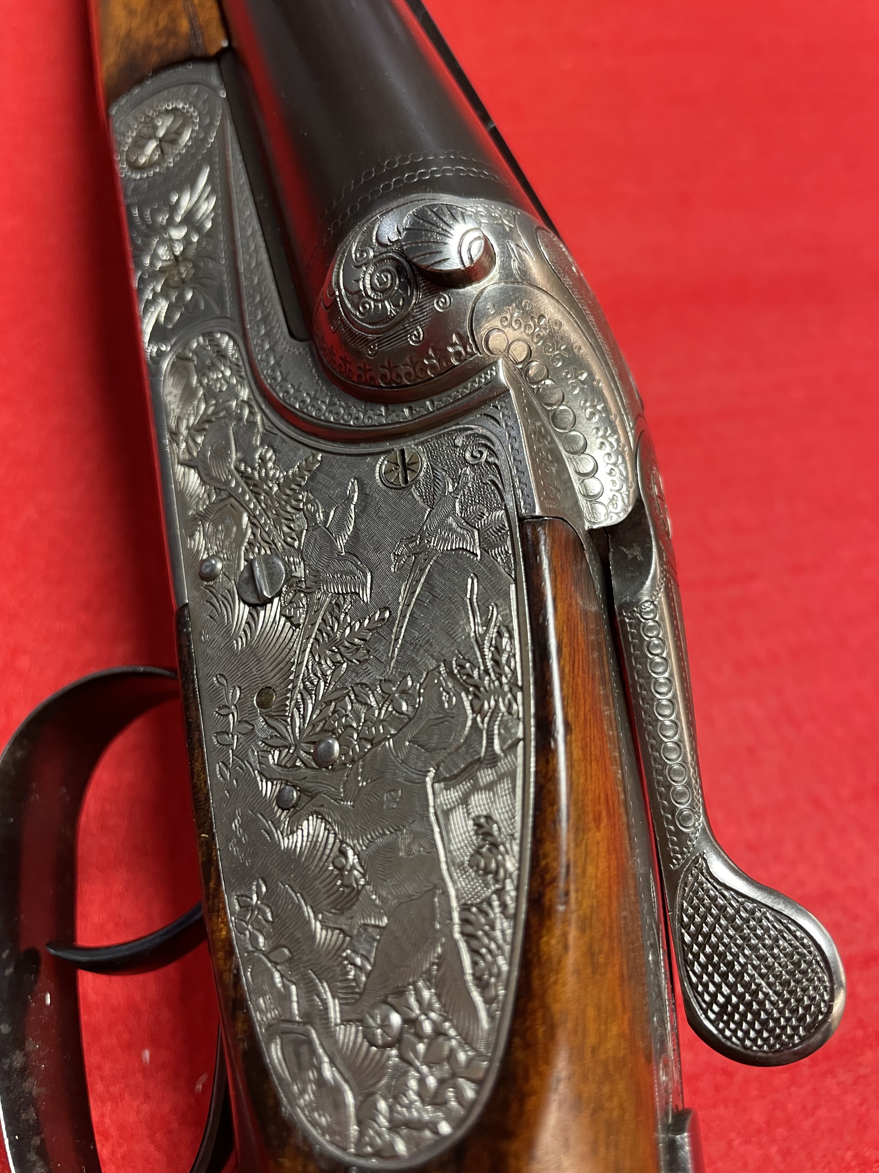 Superbe fusil juxtaposé Merkel 126E 12/70 à platines gravées en excellent état .