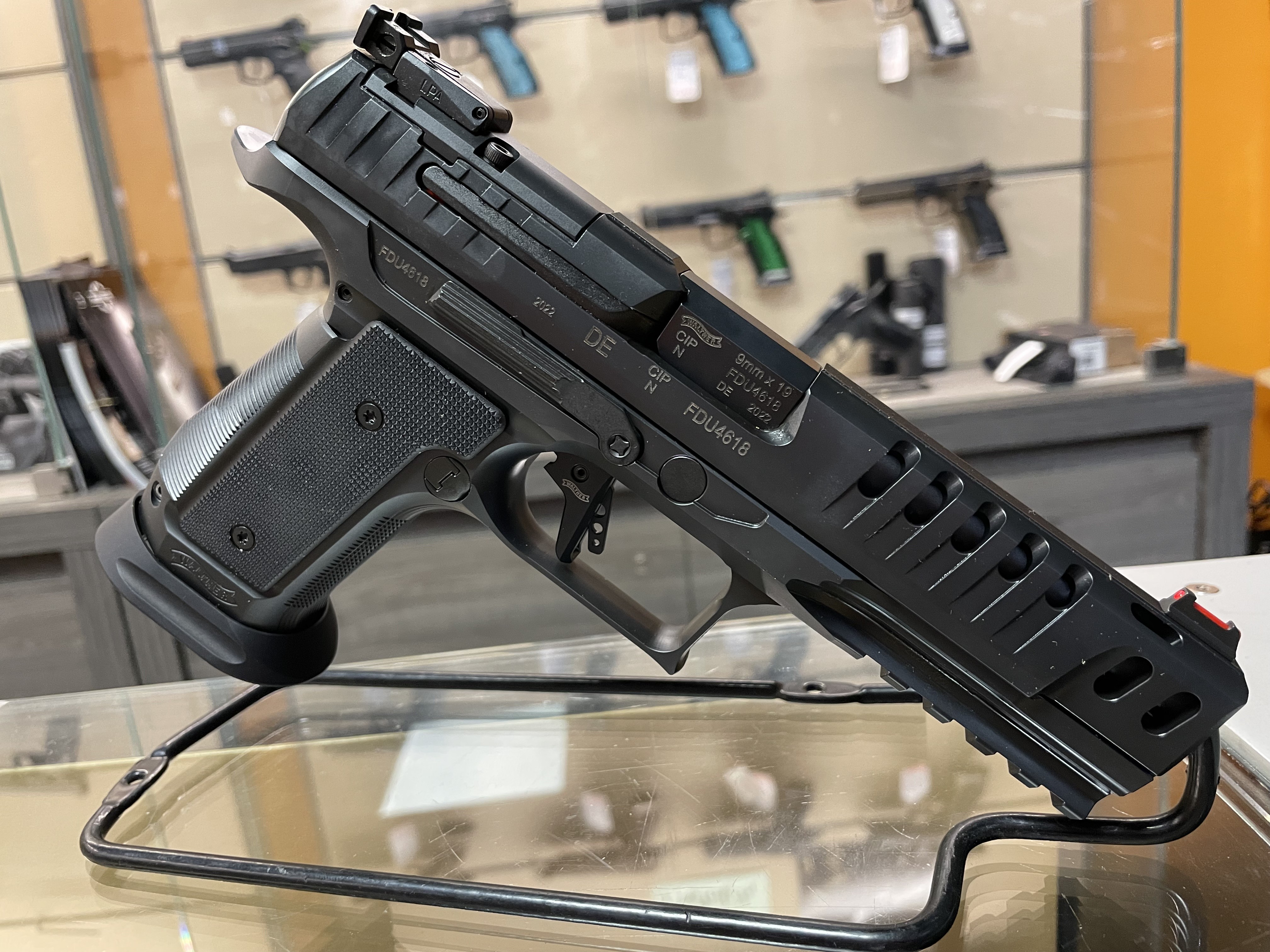Œuvre d'art moderne à part entière, la diapositive est équipée de fonctionnalités que l'on ne trouvait auparavant que sur les armes de poing personnalisées. Il est porté et prêt pour l'optique, avec des viseurs LPA ainsi que des dentelures avant et arrière. La précision supérieure de Walther est rapidement réalisée lors de la prise de vue grâce au canon de 5 pouces avec rayure polygonale et chambre étagée.