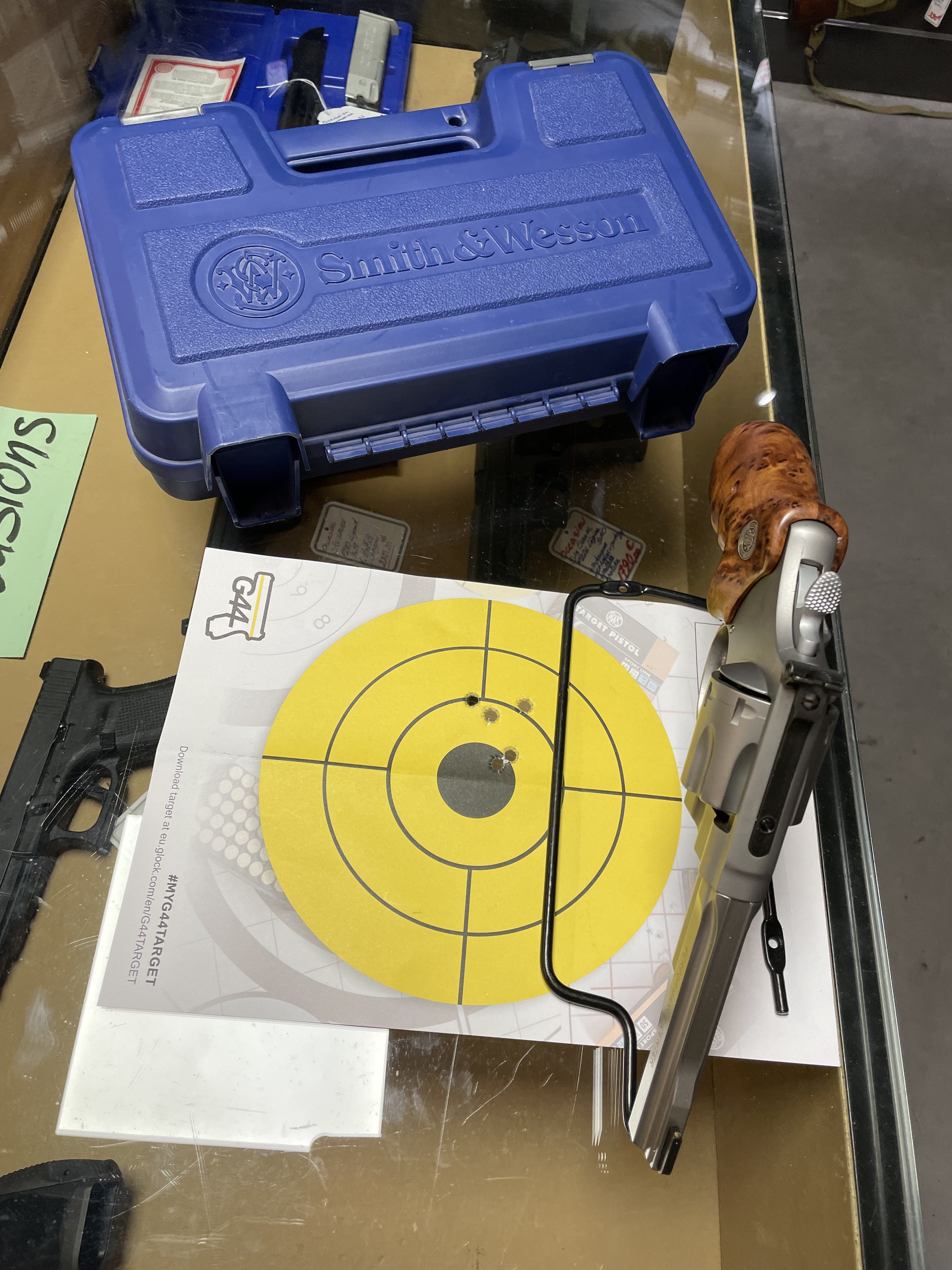 Très belle poignée bois, mallette d'origine cible d'essai.