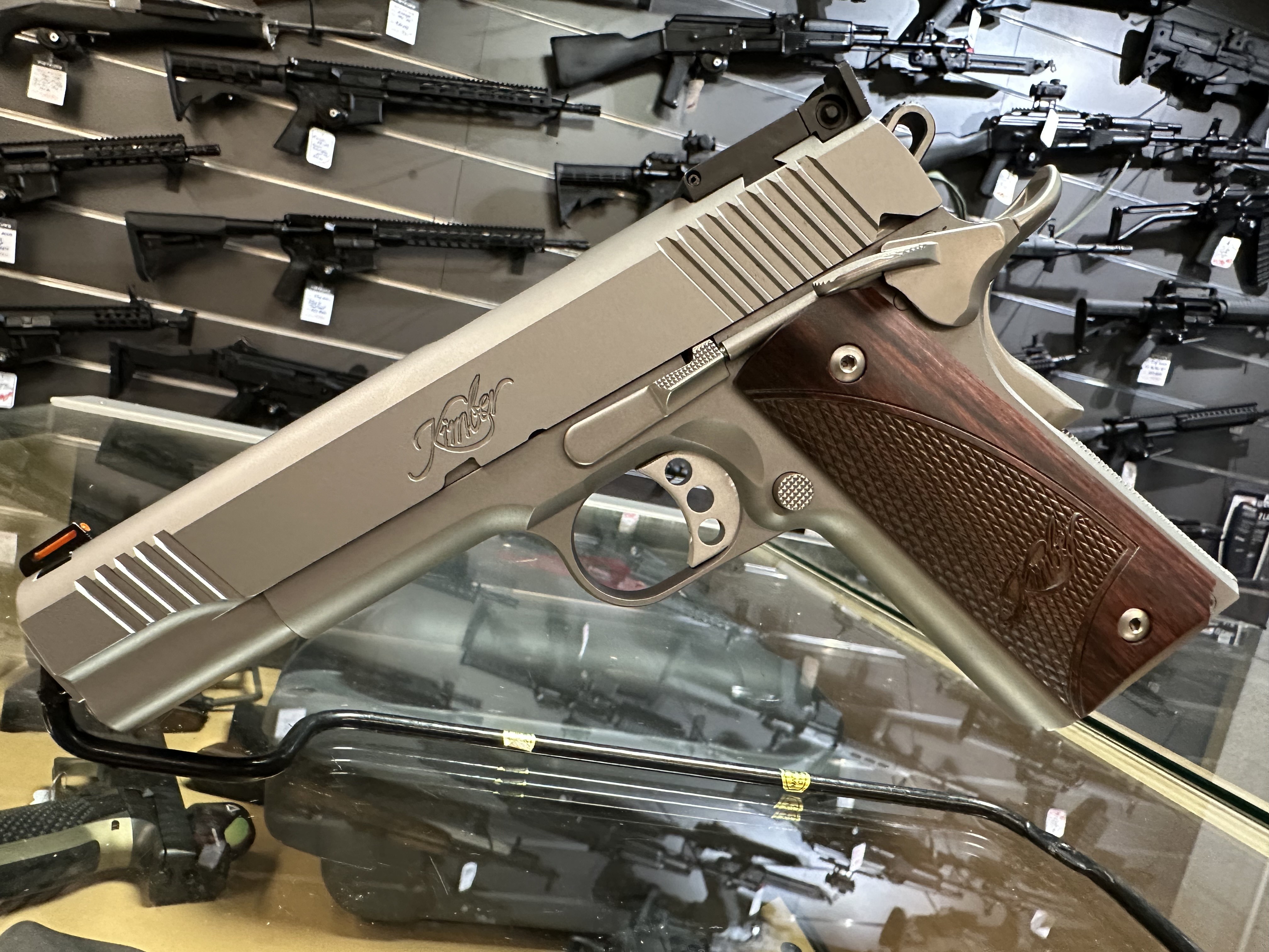- Les poignées en palissandre arborent le logo Kimber