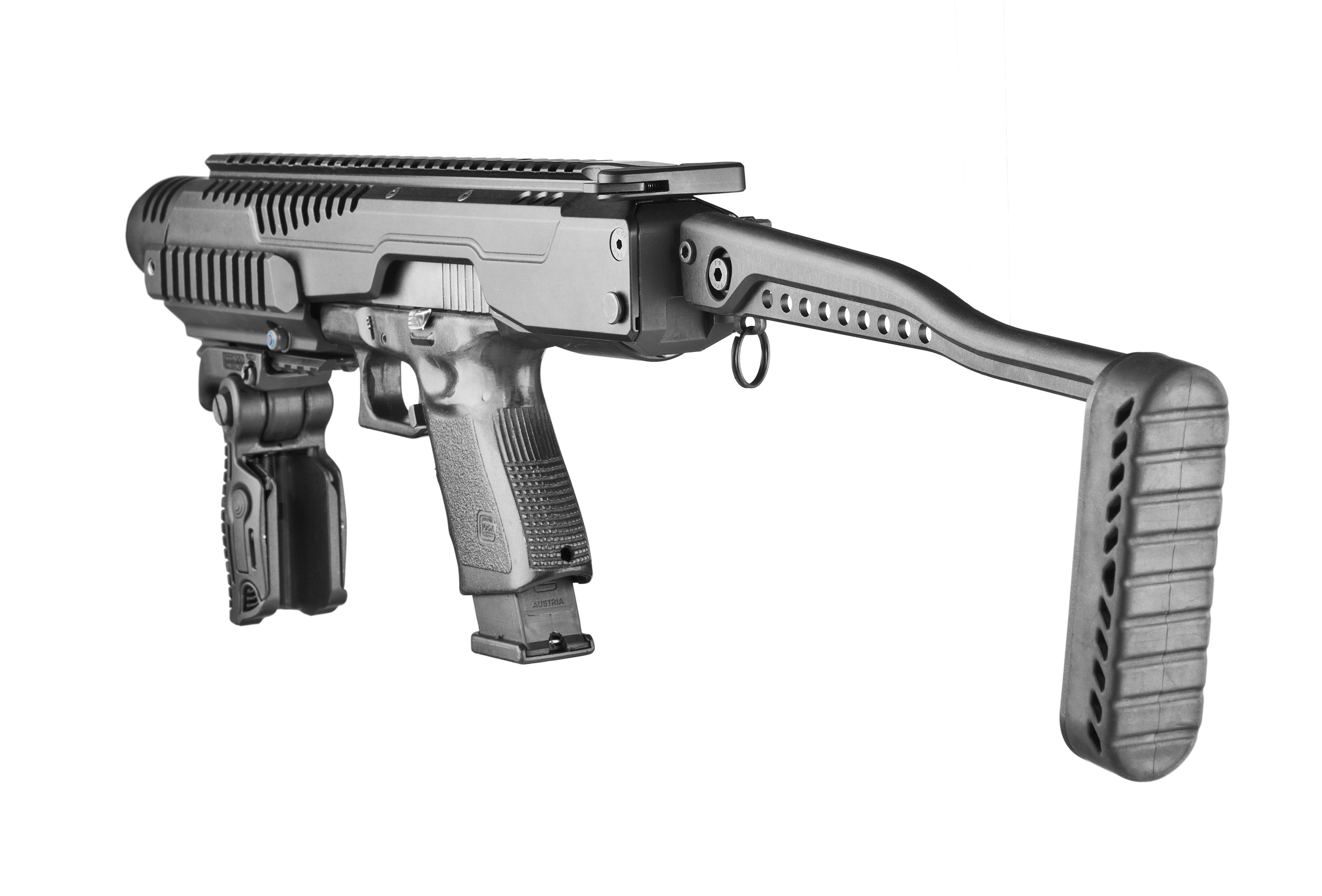 • Permet de gagner en précision, en vitesse d’acquisition• Facilite l’installation d’une visée optique• Crosse d’épaule rabattable sur le côté• Tir possible dans toutes les positions• Ensemble en aluminium léger et robuste• Conception intégrant de larges fentes d’aération permettant une excellente évacuation des gaz pour un fonctionnement optimum y compris à cadences soutenues• Possibilité d’utiliser la visée fixe d’origine• Rails Picatinny sur le dessus et les côtés, permettant de fixer des systèmes optiques et accessoires divers• Livré avec une poignée avant rabattable et une bretelle tactique extensible, fixation un point
